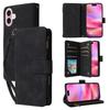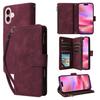 For iPhone 17 Case Zipper Wallet Multiple Card Slots Leather Phone Cover with Wrist Strap