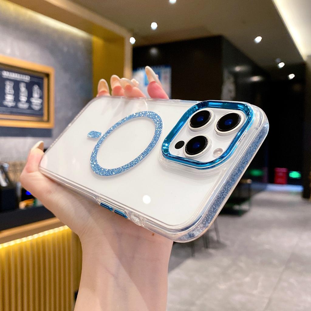 For iPhone 16 Pro Clear Case TPU + Acrylic Glitter Phone Cover Compatible with MagSafe