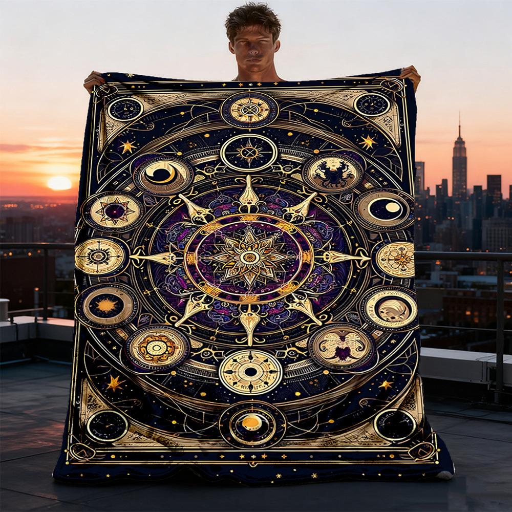 1pc Astrology Symbols Mandala Throw Blanket Polyester Fiber, Lightweight Flannel, Soft & Warm, All Season Use for Outdoor, Camping