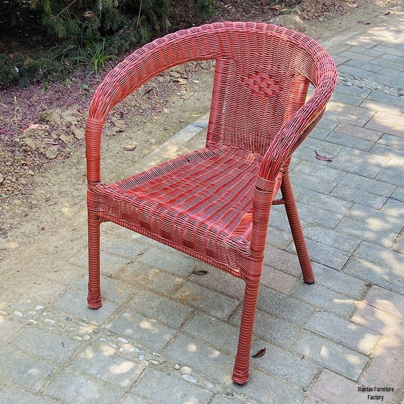 Zewnętrzne plecione krzesło rattanowe z wysokim oparciem i podłokietnikami - Idealne do użytku wewnątrz i na zewnątrz