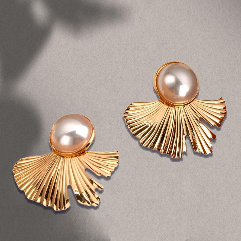 Spring and summer new design sense metal inlaid ginkgo biloba pearl earrings sex catwalk exaggerated jewelry