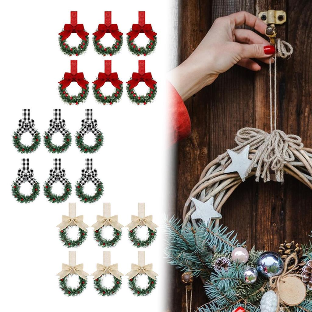 6Pcs Artificial Wreath Door Indoor Christmas Cabinet Wreaths Hanging Wreath Garlands for Diner Decoration Porch Window Wedding
