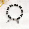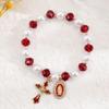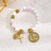 Retro Virgin Mary Pendant Pearl Bracelet with Oval Charm and Flower Design for Women