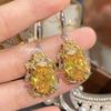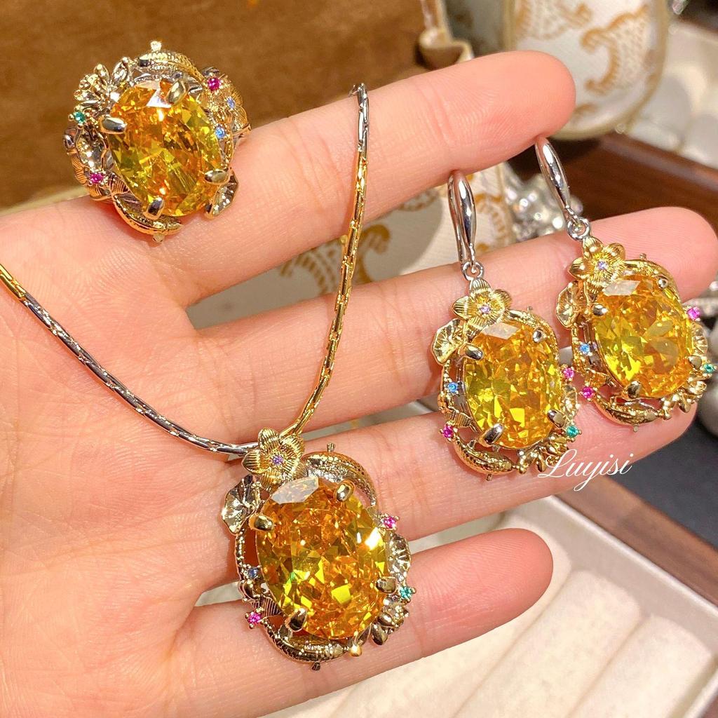 Retro French Court Style Pisces Lotus Pendant & Earrings Set with Yellow Diamond & Color Gem Ring for Women