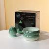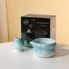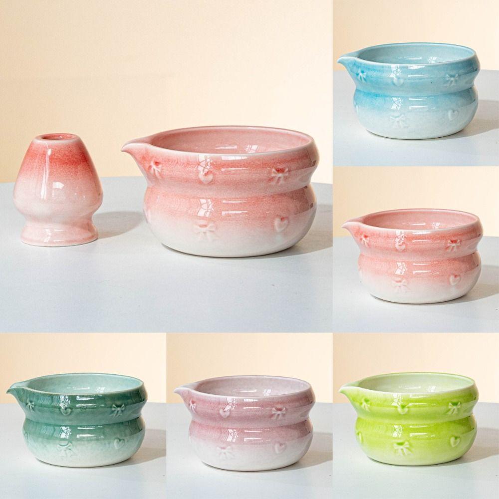 New Ceramic Matcha Bowl Gradient Color with Pouring Spout Matcha Whisk Holder Bowknot Reusable Matcha Making Kit Tea Lovers
