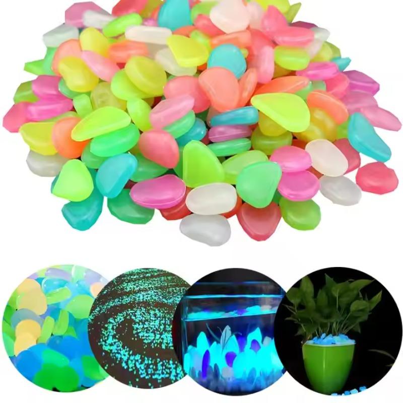 100 sztuk Kamieni Luminescencyjnych, Żywiczne Świecące Kamienie do Krajobrazu, Ścieżek Ogrodowych, Roślin w Doniczkach, Parków, Dekoracji Akwariów,