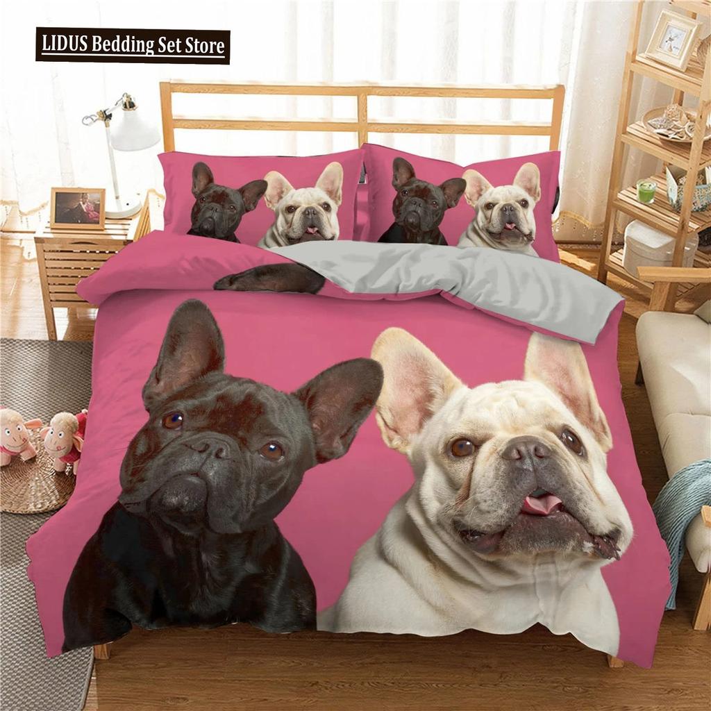 French Bulldog Duvet Cover Set Puppy Bedding Set Bedclothes With Pillowcase Single Double King Queen Size