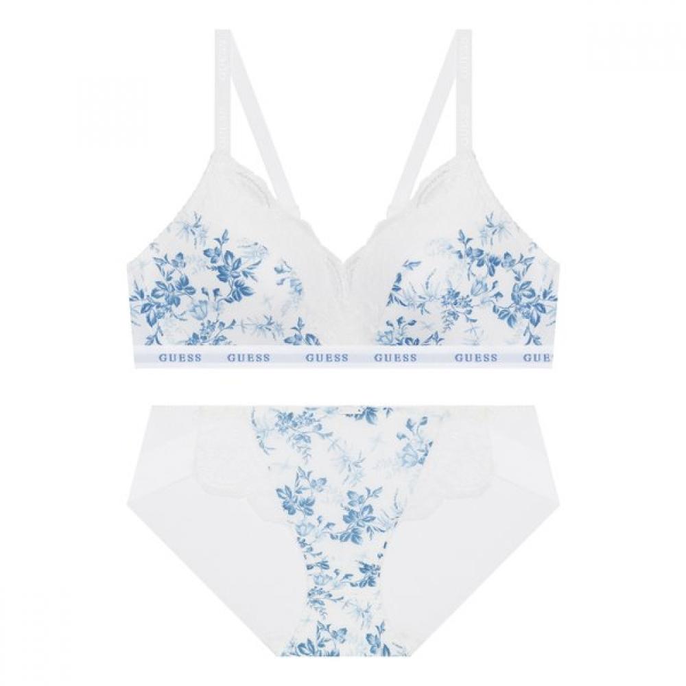 The Blue Floral No-Wire + Panty Set features a floral-patterned no-wire bra paired with matching panties. Made from lightweight materials suitable for the summer season, it provides a comfortable fit and emphasizes soft support due to its no-wire structure.