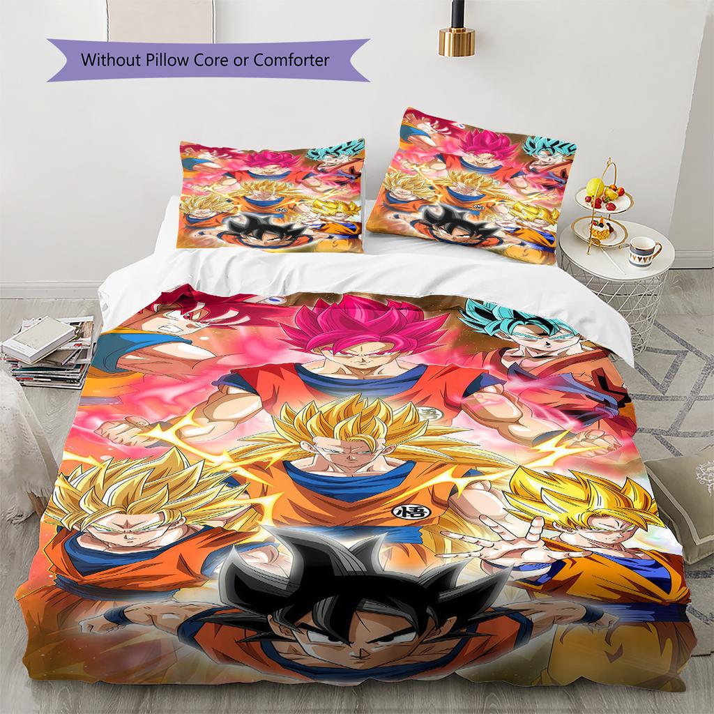 Pościel z wzorem DRAGON BALL, Zestaw kołdry Poszewka na kołdrę Poszewka na poduszkę Domowy Prezent Urodzinowy (1 * poszwa na kołdrę + 2 * poszewki na poduszki, bez rdzenia)