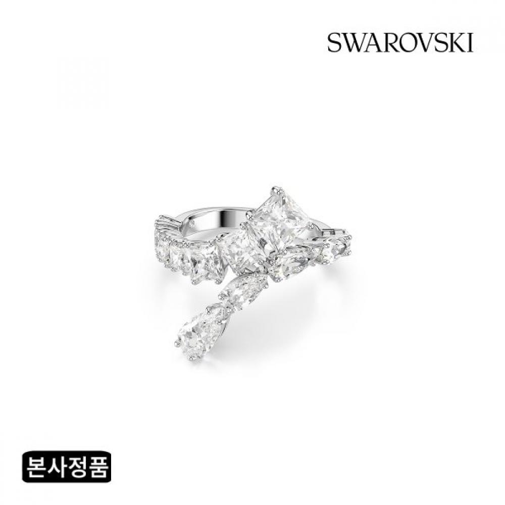 The Swarovski Rhodium Ring 5705761_5705762 is an exquisite Matrix ring designed for sophisticated beauty. Adorned with white and clear pear cut and square cut clear Swarovski zirconia, it features a slim silhouette. This must-have item perfectly complements casual wear or special occasions as a fashion accessory.
