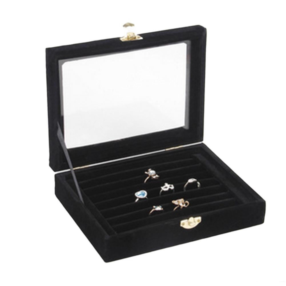 Velvet Wood Ring Pendant Earrings Jewelry Display Organizer Box Tray Holder Earring Storage Case