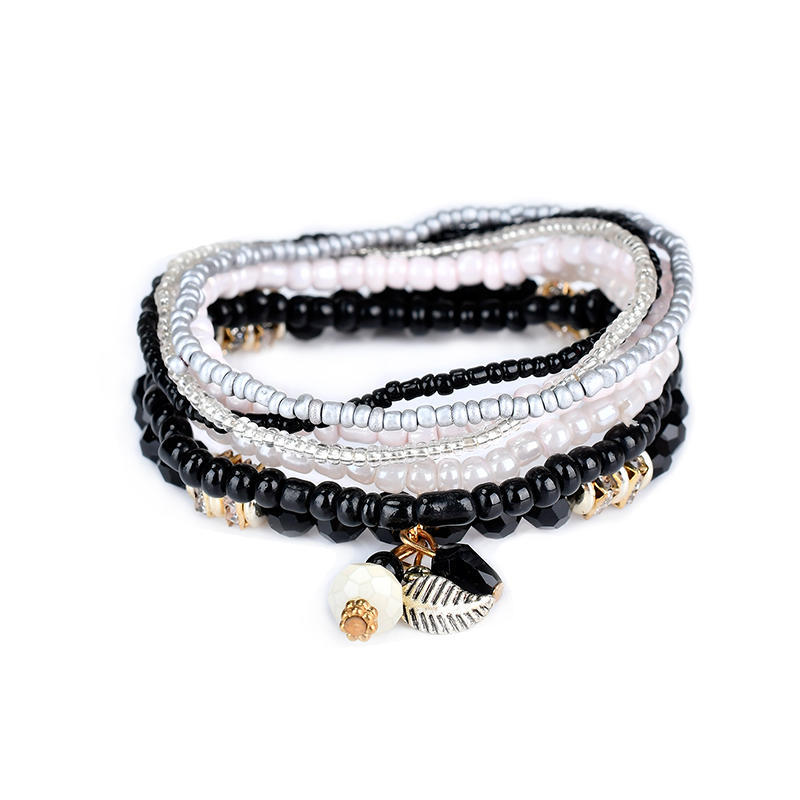 Bohemian Beaded Bracelet Wrap Multilayered Charm Leaf Wrap Wrist Bracelets Fashion Jewelry