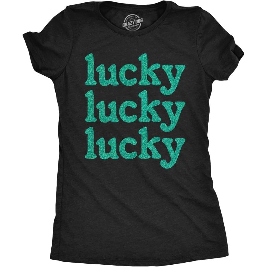 Womens Lucky 3X Green Glitter T Shirt Funny St Pattys Day Parade Luck Joke Glittery Tee for Ladies Funny T Shirts