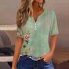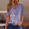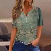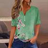 Damska koszulka z nadrukiem, guzikami, krótkim rękawem, codzienna, weekendowa, modna, podstawowa, dekolt w serek, regularna góra