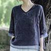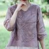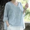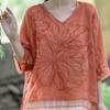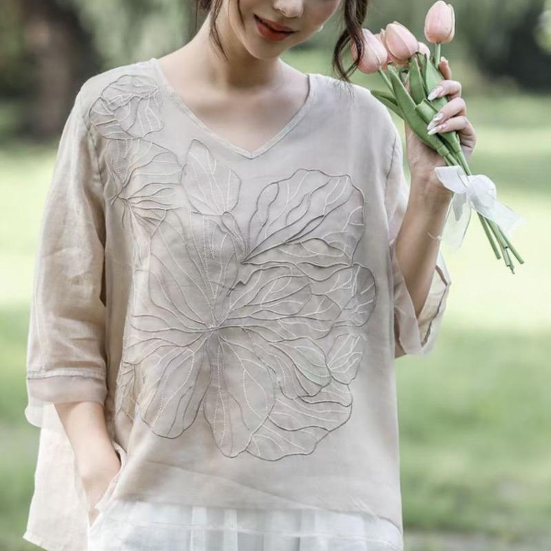 Koreańska Elegancka Letnia Damska Gładka Dekolt V Haftowana Muślinowa Modna Do Pracy Wszechstronna Rękaw Trzy Czwarte Luźna Szyfonowa Koszula Bluzki