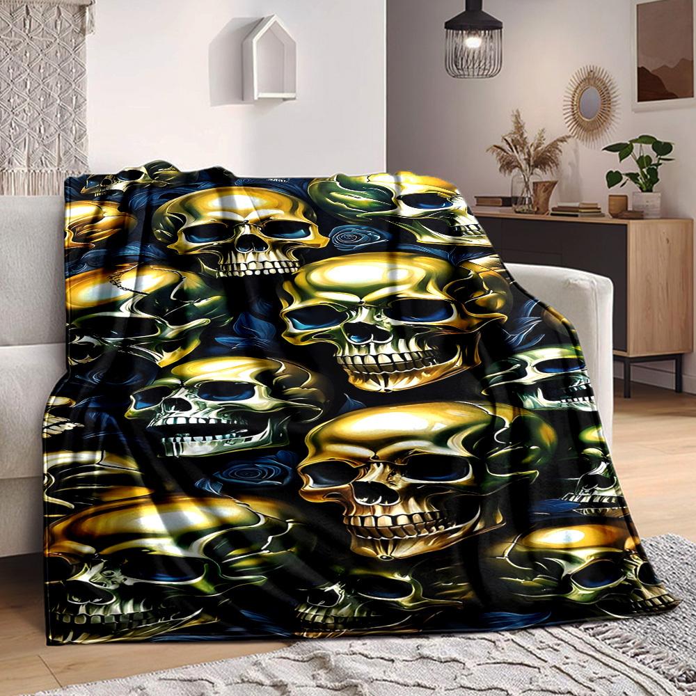 1pc Skulls Roses Blanket, Lightweight Flannel Throw Blanket For Sofa, Bed, Travel, Camping, Living Room, Office, Couch, Chair, And Bed