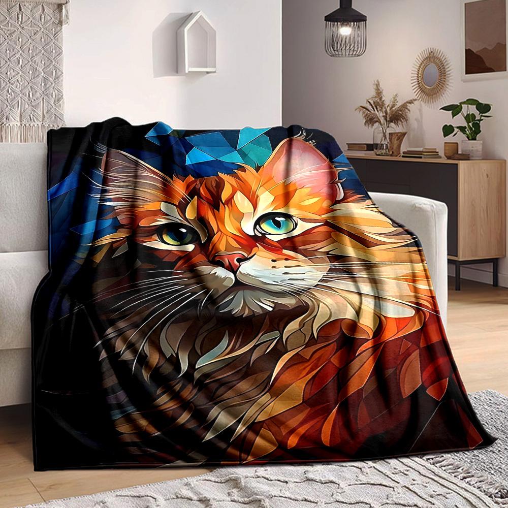 1pc Feline Abstract Print Blanket Lightweight Flannel Throw Blanket For Sofa, Bed, Living Room, Office, Outdoor Travel, Camping