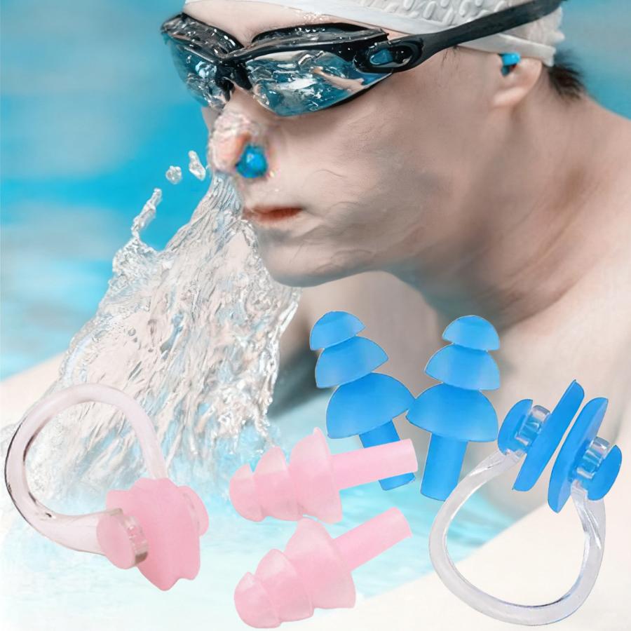 Swimming Nose Clip Earplug Set, Silicone Three-layer Waterproof Non-slip Nose Ears Protectors