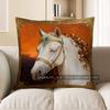 2D Elegant White Horse With Gem-Embellished Harness Pillow Pattern Cushion Cover Suitable For Sofa Bedroom Car Pillow Cover
