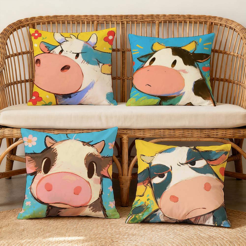 Cushion Cute Cover Soft Case Sofa Living Cartoon Room Illustration Home Comfortable Office Cow Decor Protective Pillow