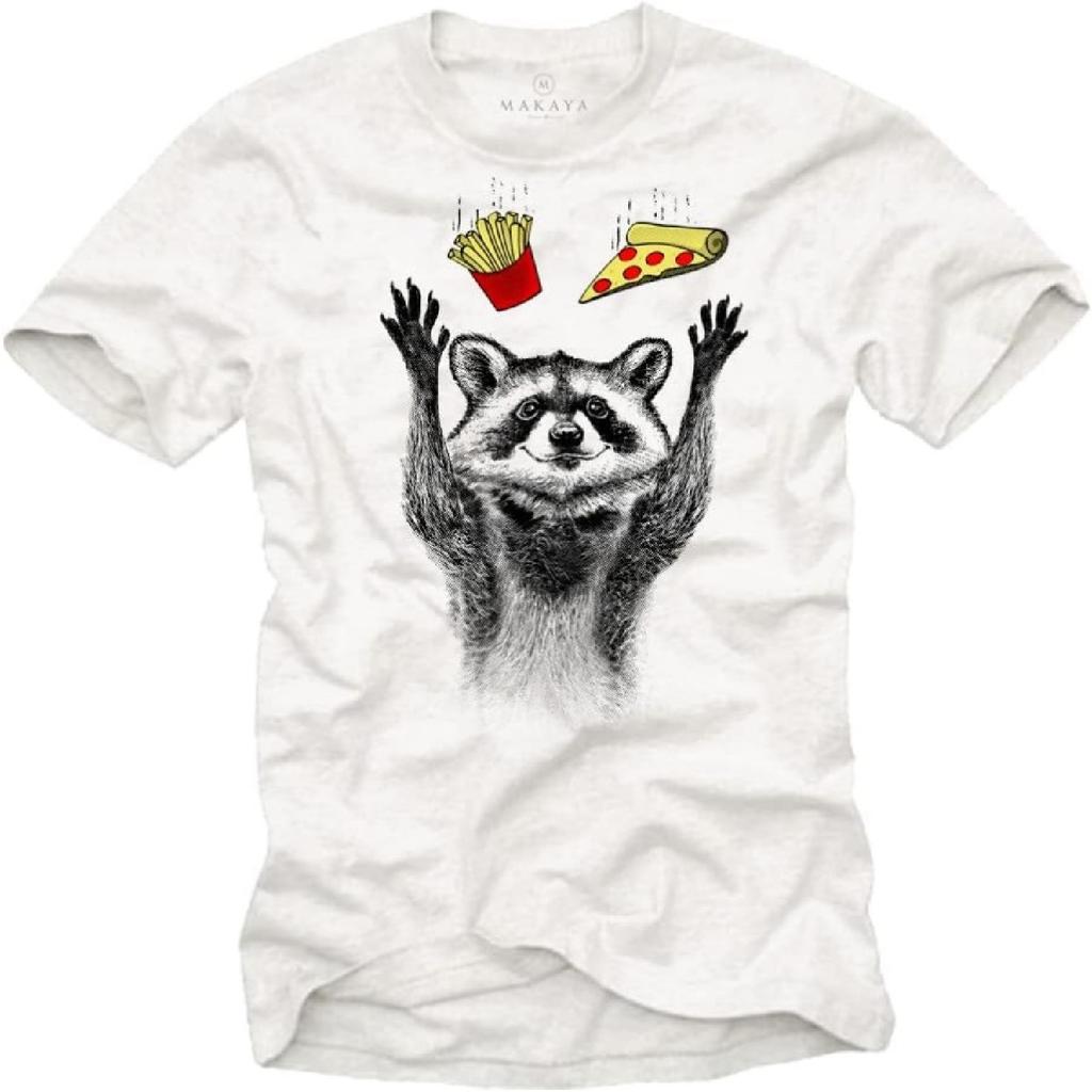 Raccoon T-Shirt for Men - Pizza & Fries Printed Graphic Tee Shirt