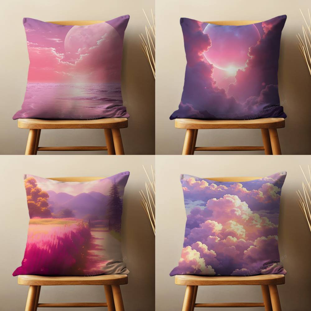 Pink Dreamy Landscape Pillow Case Living Room Sofa Cushion Cover Suitable For Home Bedroom Decoration And Protector