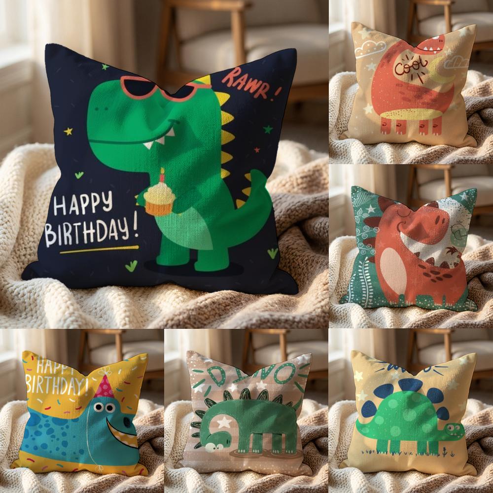 Cute Cartoon Dinosaur Cushion Cover Multi-Scene Pillow Cover for Home & Car - Reversible, Soft & Durable for Daily Use