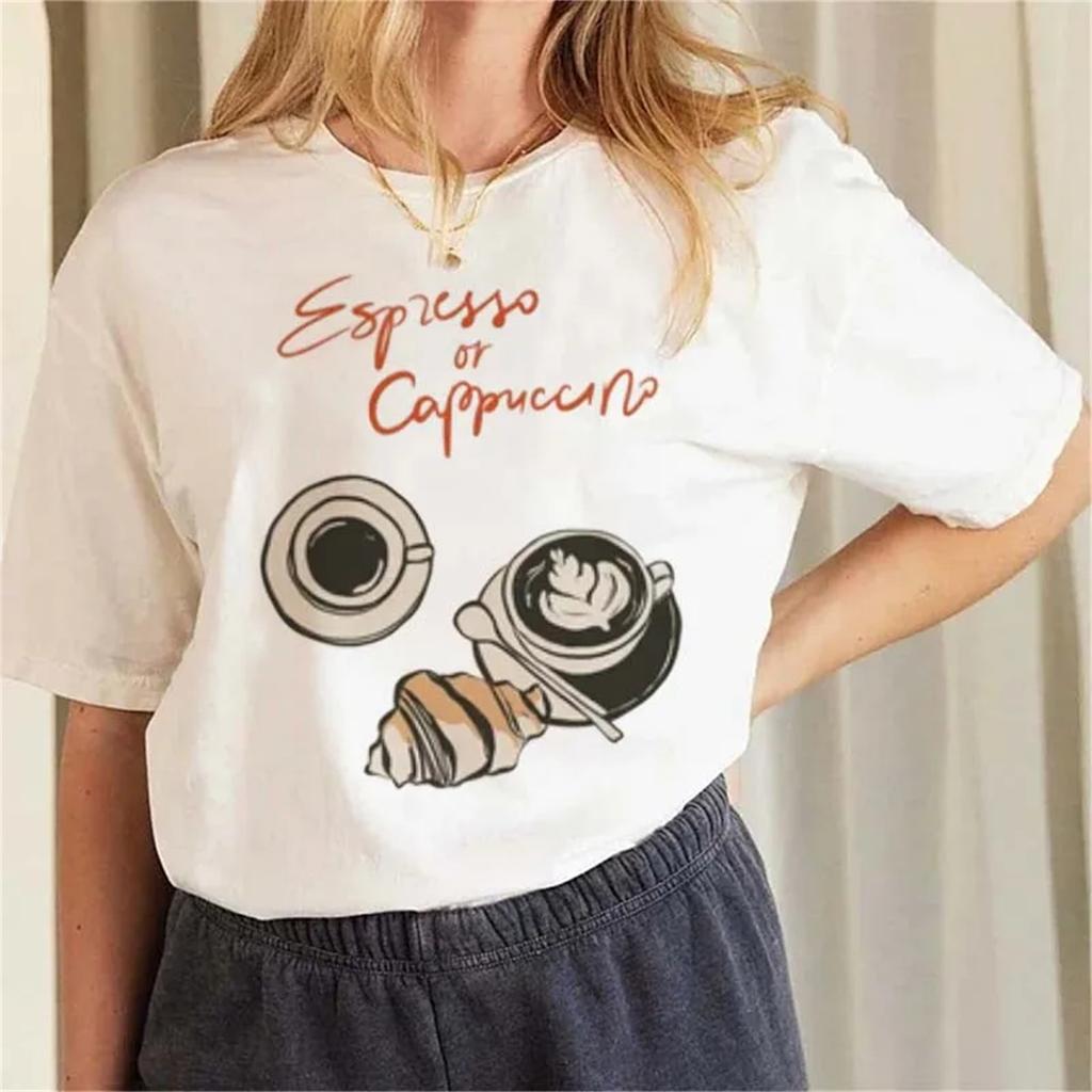 Coffee Bread Pattern Summer T-Shirt Fashion Top Clothing Short Sleeved Women's Printed Summer Casual Round Neck Fun T-Shirt