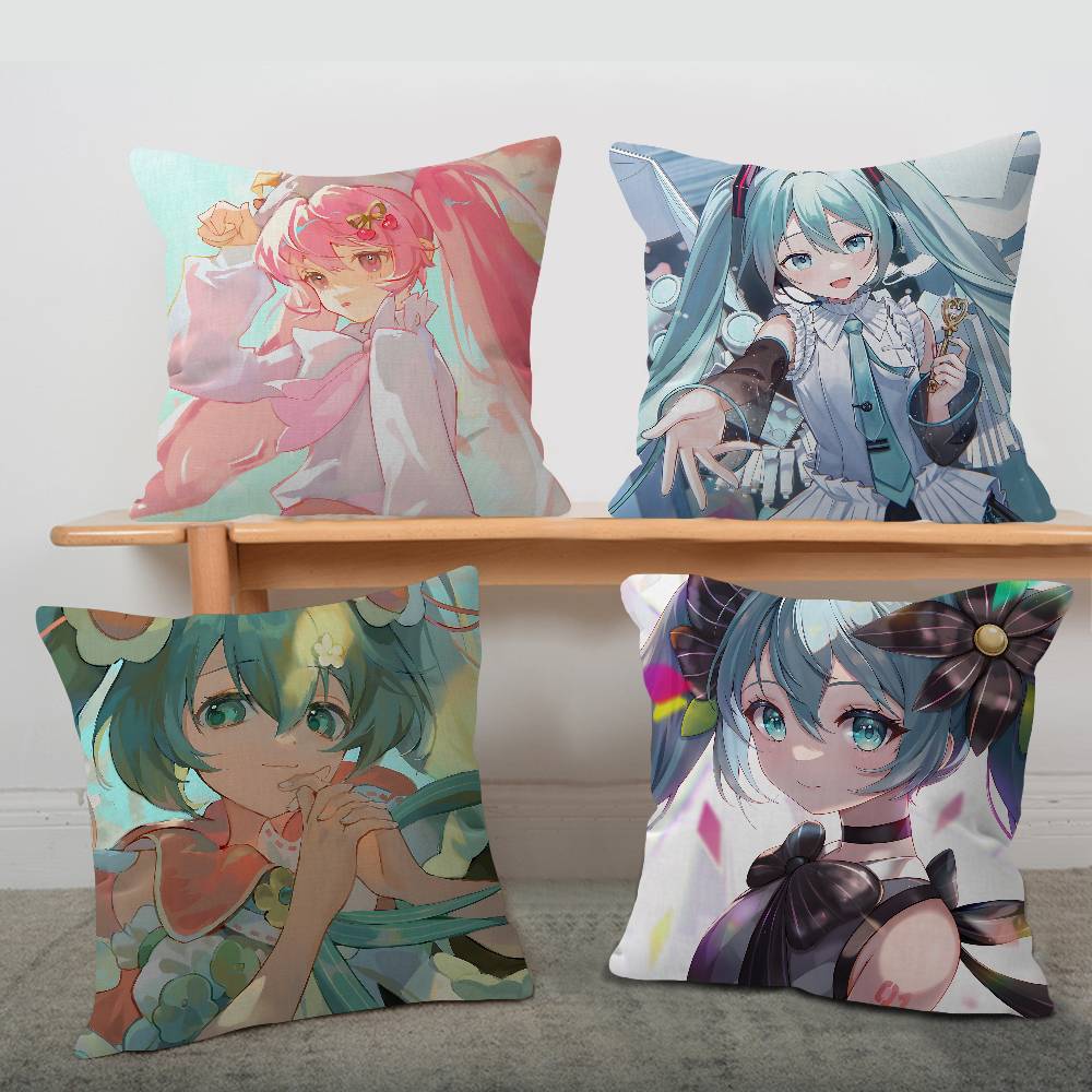 Japanese H-Hatsunes Girl Mikus Pillow Cover Sofa Cushion Cover Home Room Decoration Children Gift