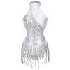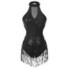 Damski Kostium na Występ Tańca Latynoamerykańskiego Błyszczący cekinowy Blok Kolorów Body Bez Rękawów z Frędzlami Leotard