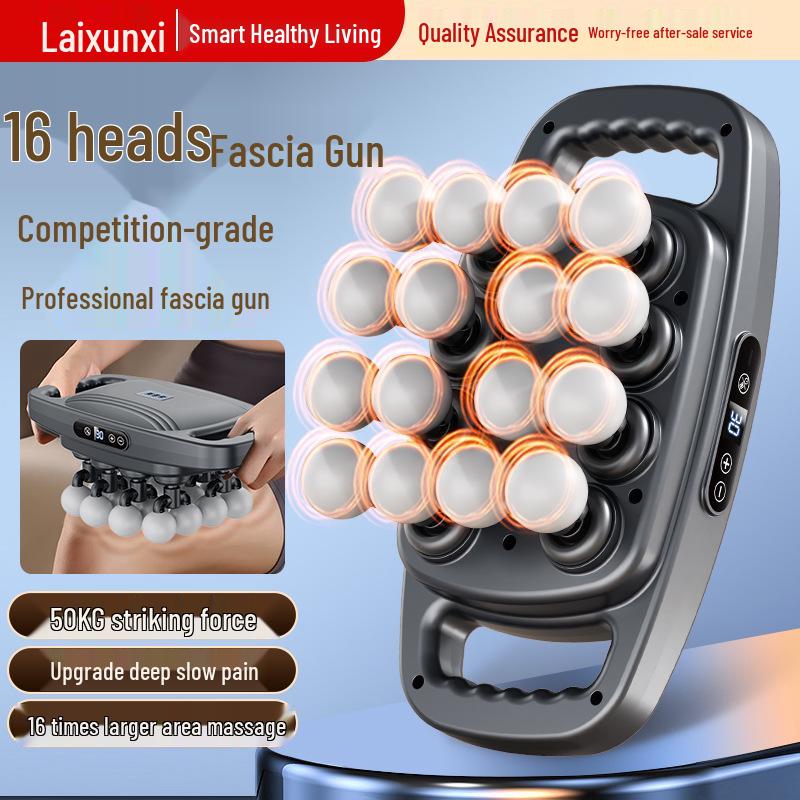 Customizable Sixteen-Head Rechargeable Fascia Massage Gun with Strong Vibration for Waist & Back