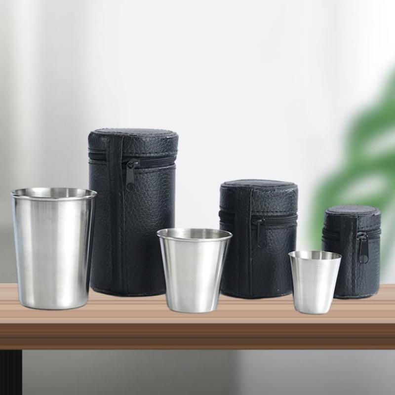 4pcs/Set Stainless Steel Glass Set Outdoor Small Glasses Set Travel Picnic Cup Set 30/70/170ml