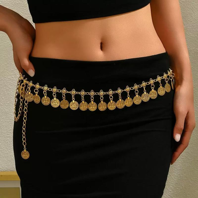 Vintage Ethnic Style Tassel Coin Waist Chain Women Fashion Decorative Belt For Dress Adjustable Jewelry
