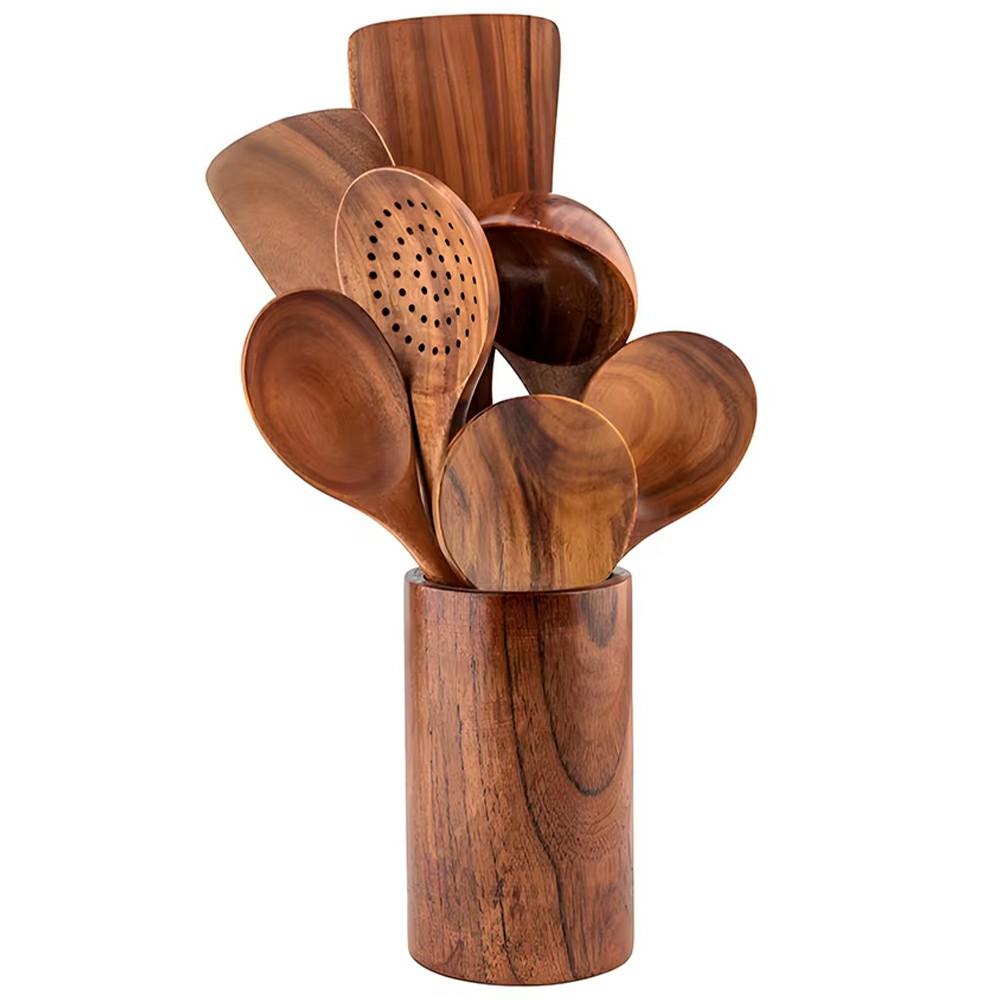 8 szt./zestaw Drewniane przybory kuchenne Nieprzywierająca łopatka z długą rączką, łyżka, narzędzia do gotowania (Bez FDA, bez BPA)
