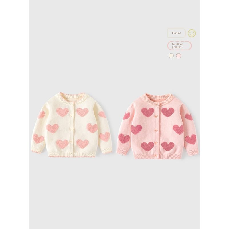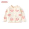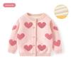 Spring and Autumn Kids Heart Combed Cotton Long Sleeves Sweater Girl Fleece-lined Cardigan Top Baby Girl Knitwear Outwear