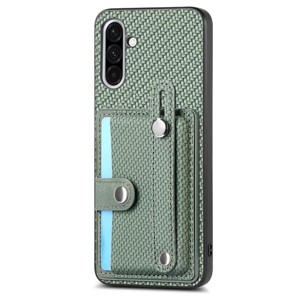 Etui na Samsung Galaxy A36 5G Tekstura Włókna Węglowego Skórzany Pokrowiec na Tył Telefonu z Uchwytem na Karty