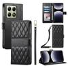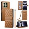 For Xiaomi 14T Case Rhombus Stitching Wallet Stand Leather Phone Cover with Long/Short Strap