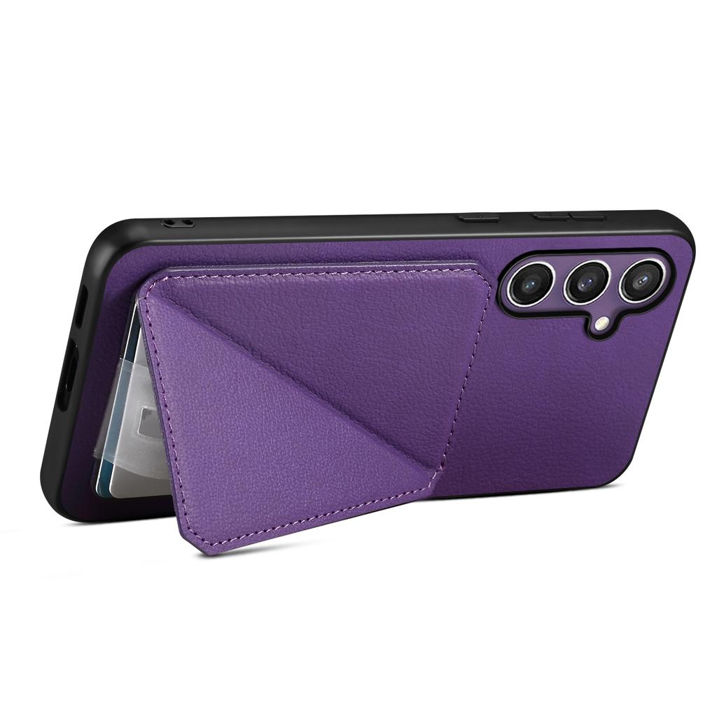 Etui na Samsung Galaxy S25 z uchwytem na karty, podstawką, wykonane ze skóry cielęcej o fakturze + PC + TPU, Pokrowiec na telefon