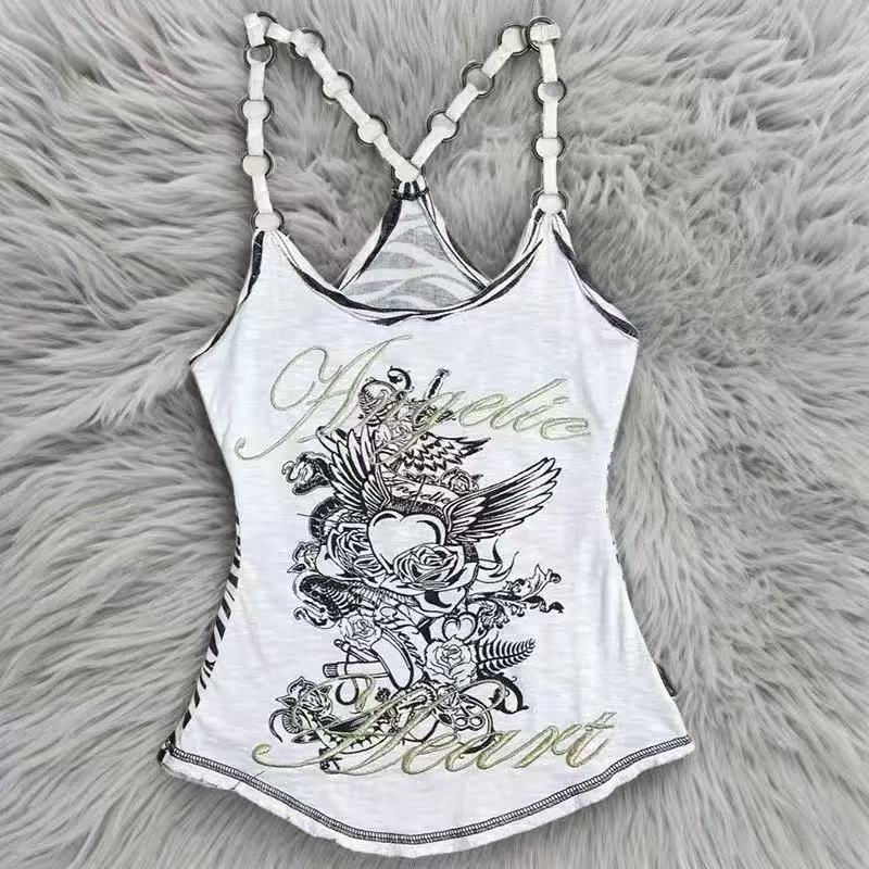TrendHub Koszulki Graficzne Grunge Lata 90. Vintage Ubrania Emo Dziewczyna Top na Ramiączkach Casual Litera Estetyka Krótki Top Ramiączko Punk Seksowne Top Bez Rękawów Streetwear Y2k