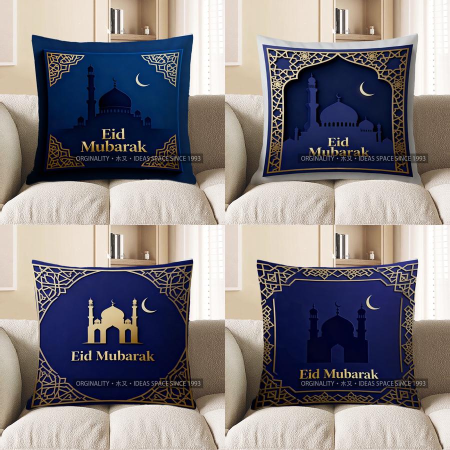 2D Eid Mubarak Islamic Mosque Pattern Pillow Pattern Cushion Cover Suitable For Sofa Bedroom Car Pillow Cover