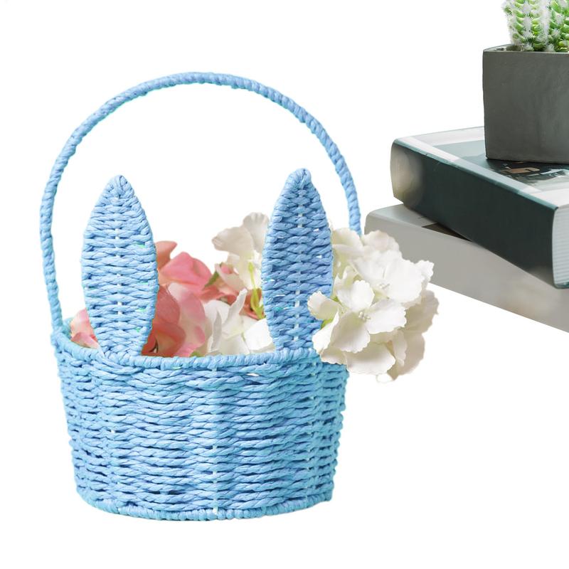 Woven Easter Basket Hand Woven Picnic Egg Gathering Basket Compact Natural Classic Aesthetic Decor for Bedroom Patio Picnic