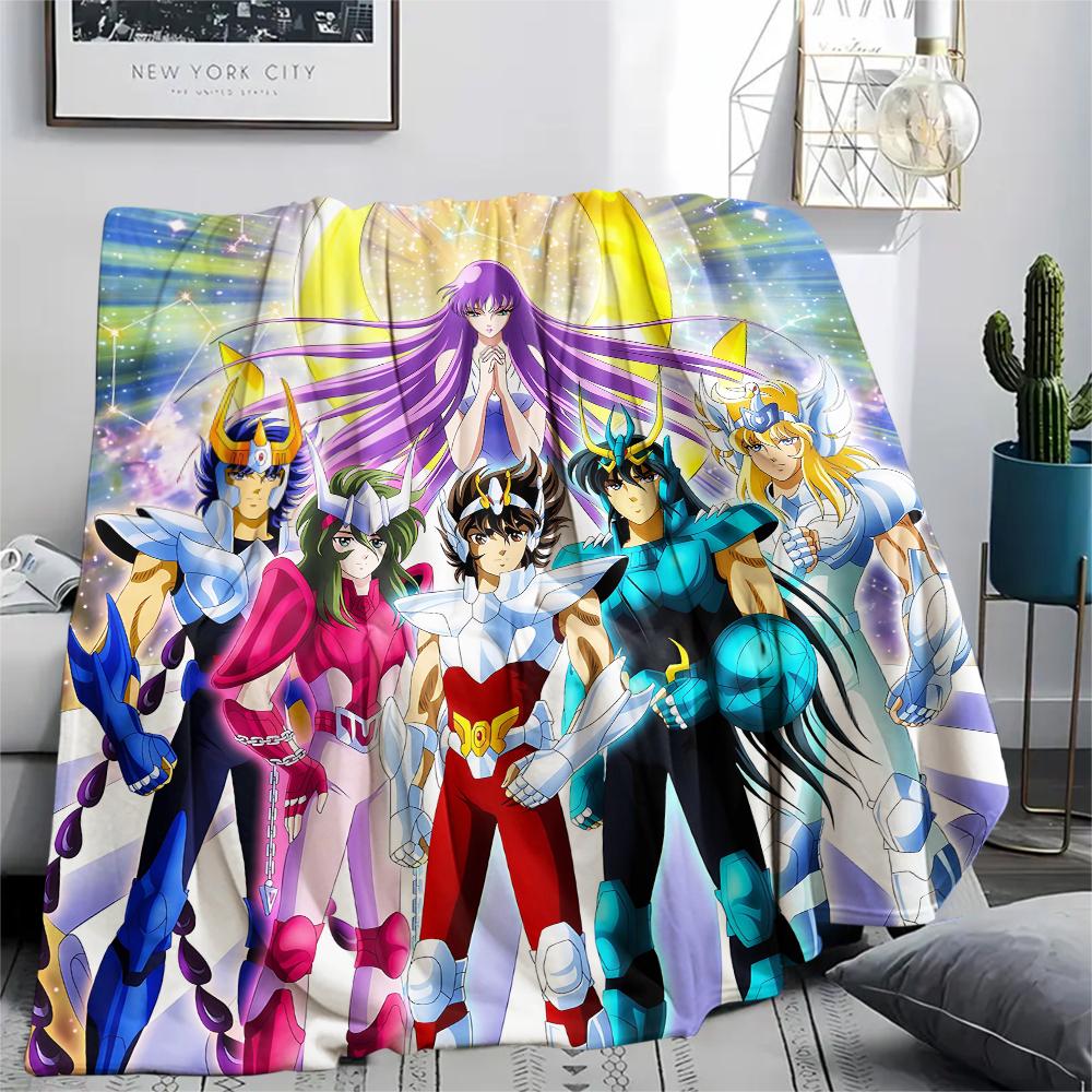 1Pc Saint Seiya Print Flannel Blanket, High quality Comfortable for All Seasons, Home Decor, Warmth and Comfort, Perfect for Christmas Gifts