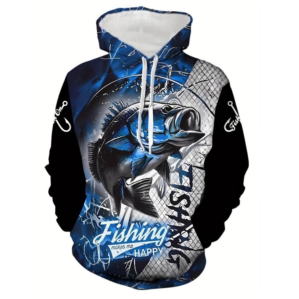 Men's 3D Fish Pattern Printed Hooded Sweatshirt