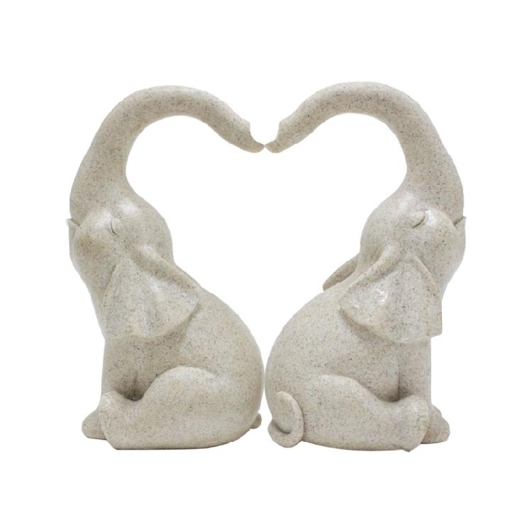 Pair of Elephant Sculpture Resin Statue Love Elephant Designs Figurine Statues for Patio and Indoor Desk Decoration