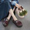 Johnature Skórzane Retro Czółenka na Grubej Platformie z Obcasem Okrągły Nosek Zapięcie na Rzepy Damskie Buty Platformowe
