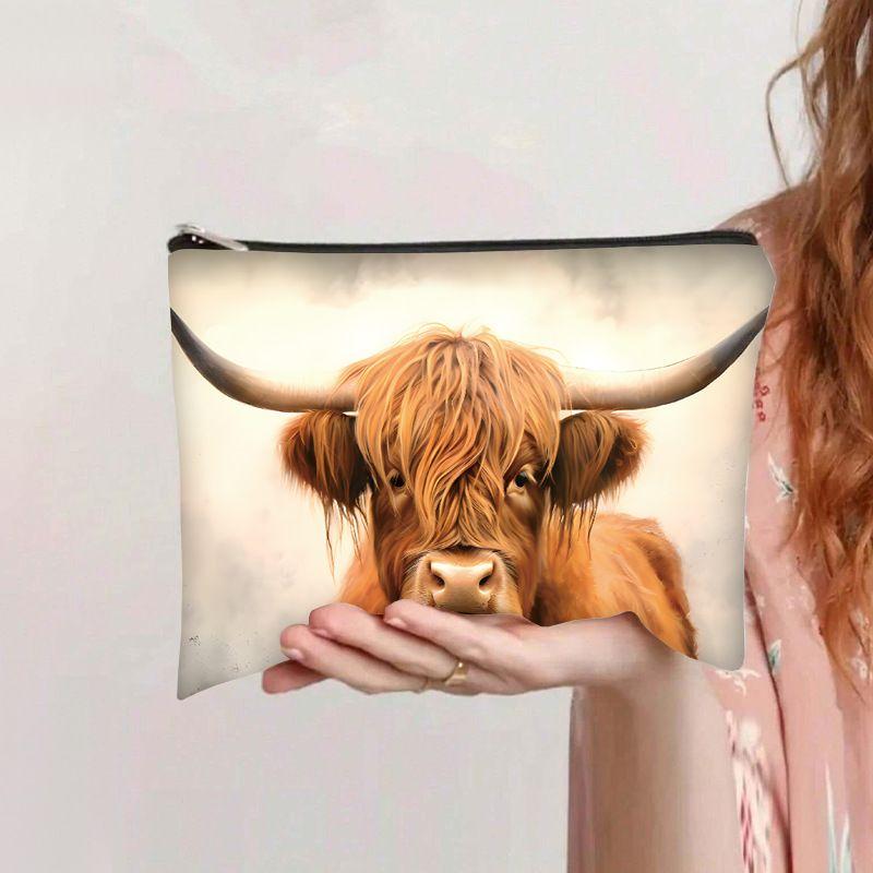 Hot-selling printed highland cow cosmetic bag, data cable storage bag, dedicated for portable large-capacity toiletry bag