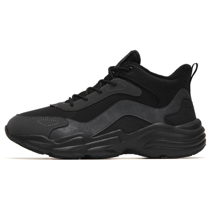 Anta Walker Slip-Resistant Warm Mid-Top Sports Casual Shoes Black Gray Sneakers 112248984-1