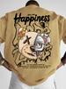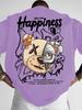 Modny męski nowy letni T-shirt z nadrukiem maszyny, misia i litery, wygodny i oddychający, z okrągłym dekoltem, do noszenia na zewnątrz, w mieście, na ulicy