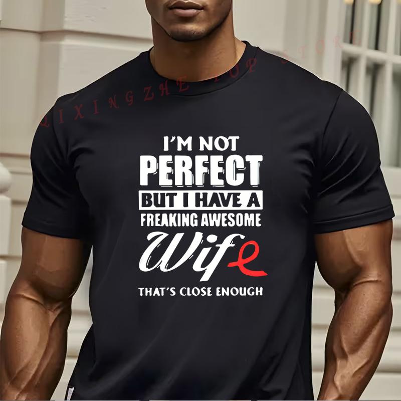 Mens Athletic TShirt Im Not Perfect But I Have A Freaking Awesome Wife Print Tshirt Funny Present for Men Short Sleeve Tees