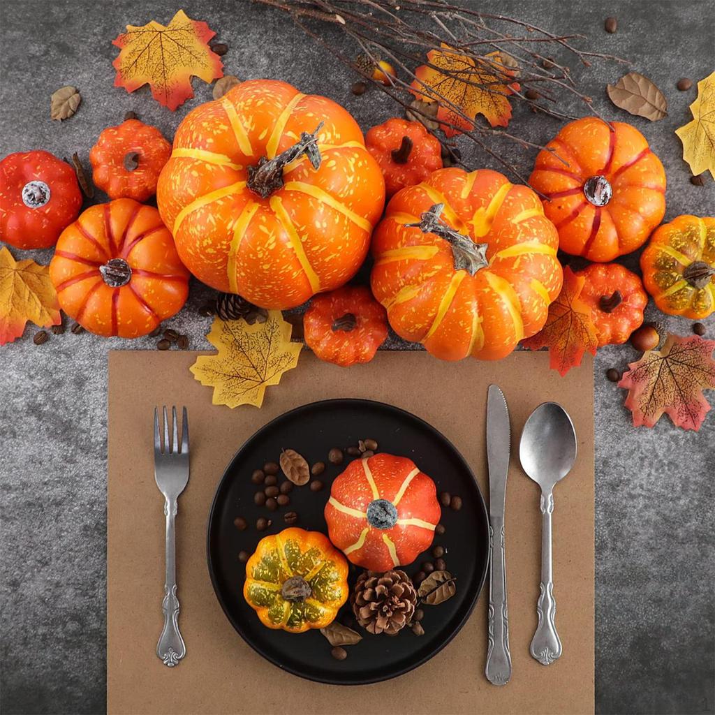 Artificial Pumpkin Assortment, Set of 12 Pieces for Fall And Halloween Decor
